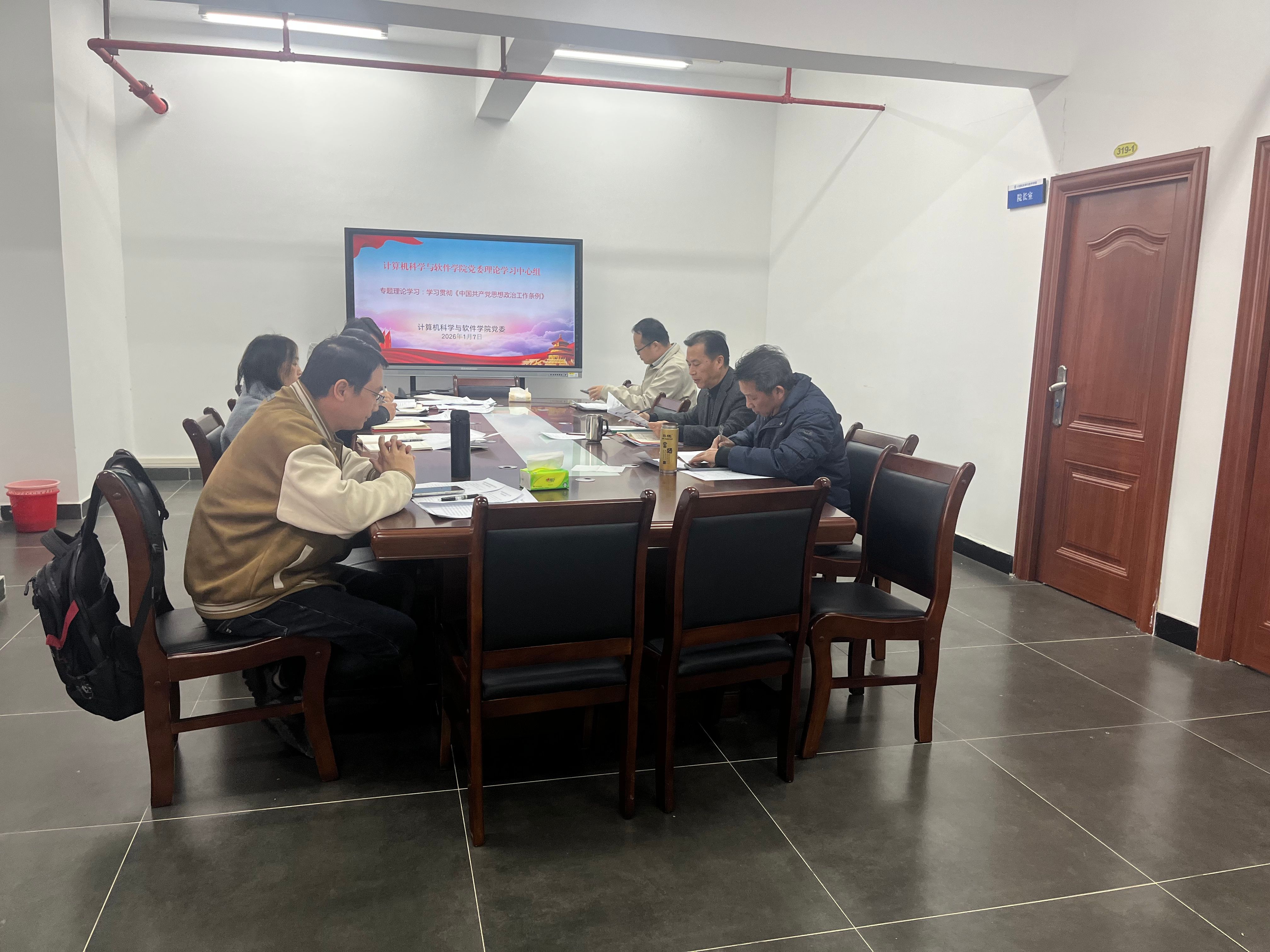 本网讯 2026年1月7日,英国威廉集团官网党委在学院实训319会议室召开学院党委理论学习中心组(扩大)会议,专题学习贯彻《中国共产党思想政治工作条例》(以下简称《条例》)。学院党委书记黎天宇主持会议,学院党委领导班子、各党支部书记与专职组织员参加会议。