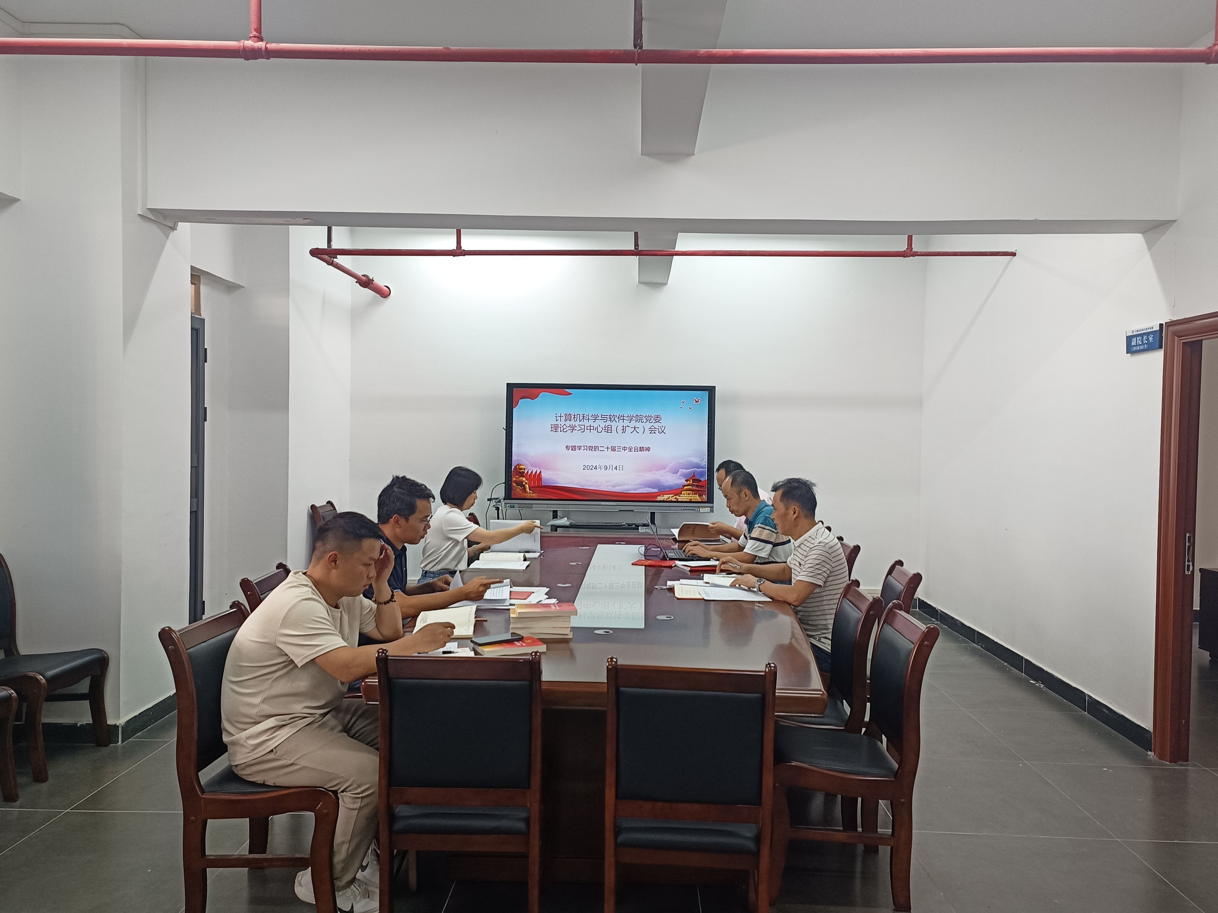 9月4日下午,计算机学院党委在实训大楼319会议室召开理论学习中心组(扩大)会议,专题学习党的二十届三中全会精神。学院党委委员、各党支部书记、专职组织员参加会议,会议由学院党委书记黎天宇主持。