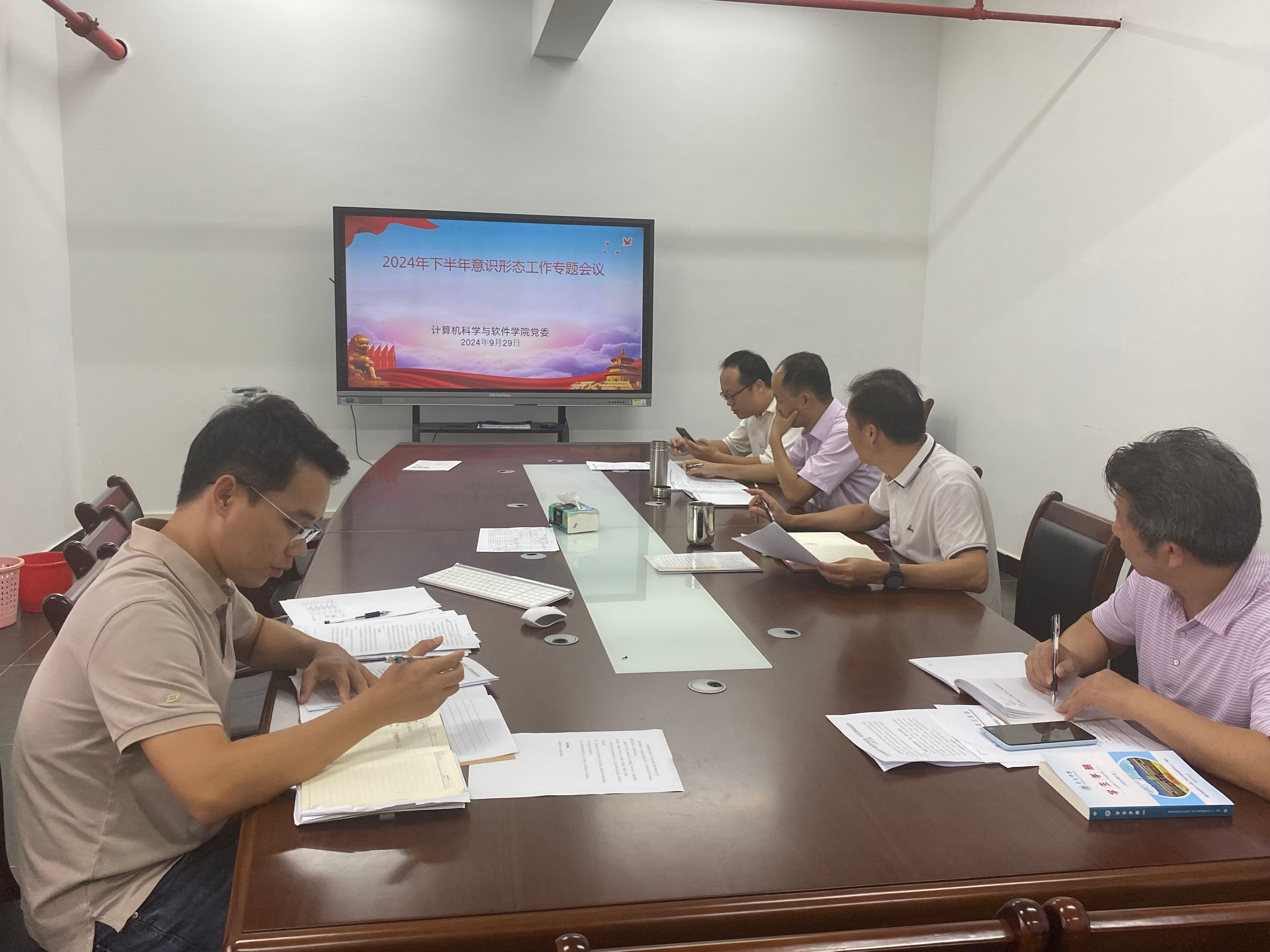 9月29日下午,计算机科学与软件学院在学院319会议室召开2024年下半年意识形态工作专题会议。学院领导班子成员、专职组织员参加会议,会议由学院党委书记黎天宇主持。