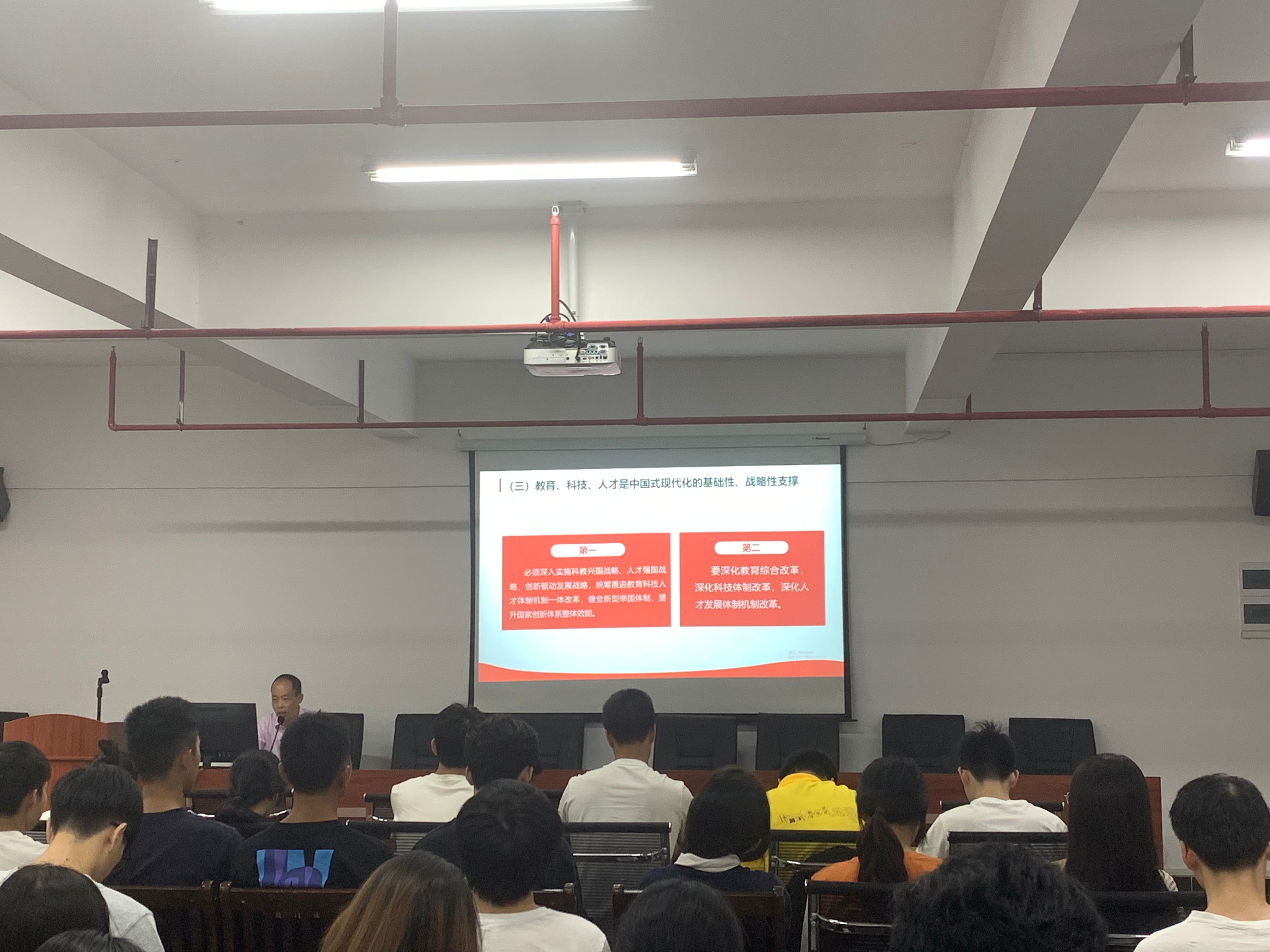 为深入学习贯彻落实党的二十届三中全会精神,推动党的理论成果进校园,引导学生坚定理想信念,争当时代新人,增强学习贯彻全会精神的思想自觉和行动自觉,2024年10月9日下午,学院副院长(主持行政全面工作)王俊波以“擘画进一步全面深化改革新蓝图——深入学习贯彻党的二十届三中全会精神”为主题,为同学们讲授思政第一课,启迪同学们感悟当代青年的历史使命与时代责任,以青春之力书写中国式现代化新篇章。