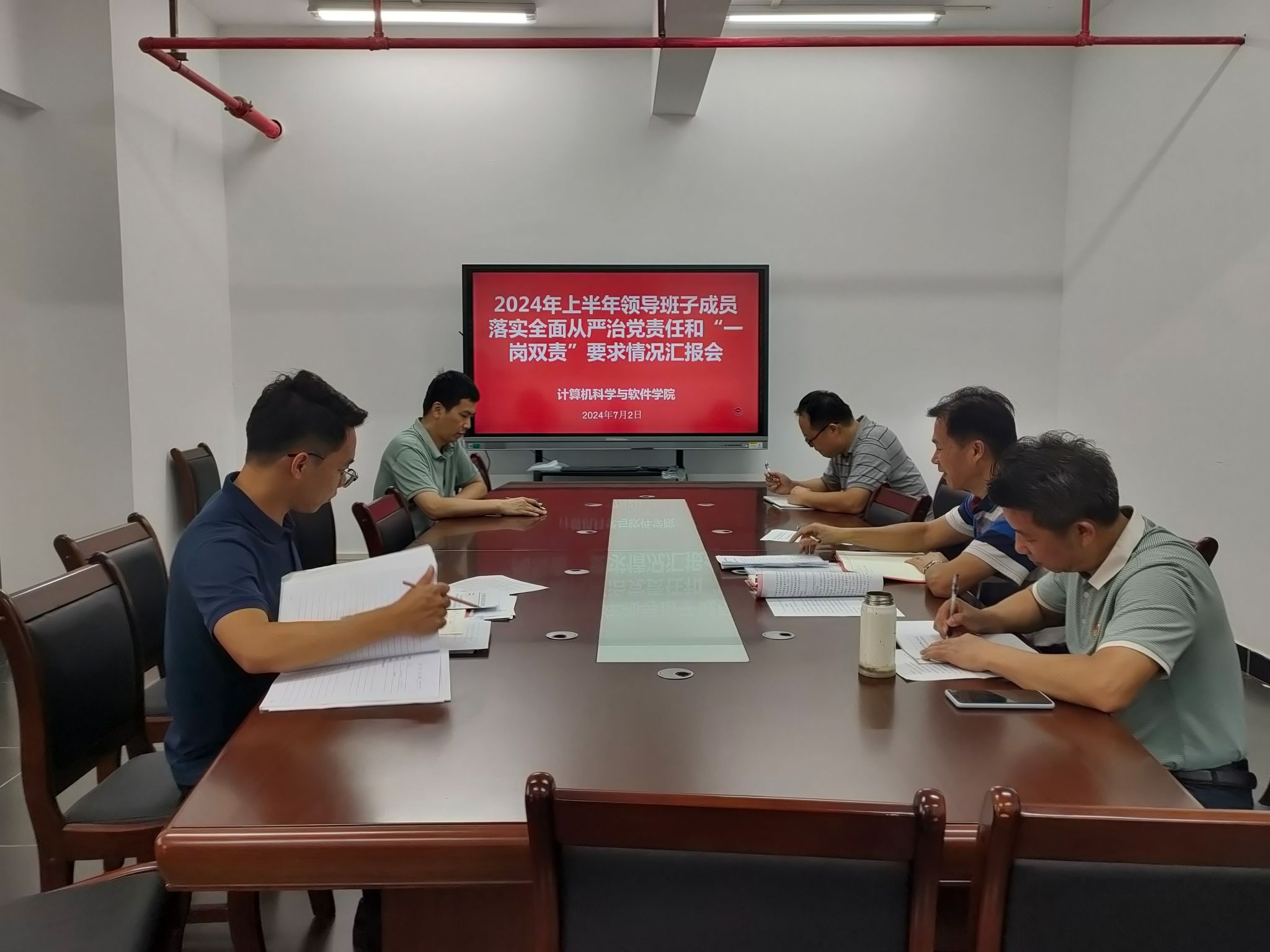 2024年7月2日,计算机科学与软件学院召开2024年上半年领导班子成员落实全面从严治党责任和“一岗双责”要求汇报会暨2024年上半年重点工作进展情况通报会。学院党委书记黎天宇主持会议,学院党政领导班子成员专职组织员参会。