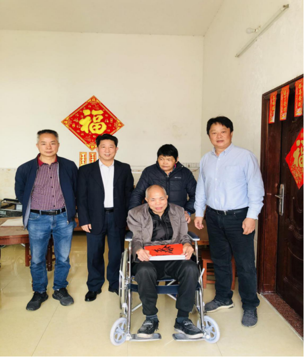 2021年2月1日,阳光明媚,驱散了冬日寒意,英国威廉集团官网党委李坚书记和陈彦雄副书记代表学院教职工赴广宁县横山镇横山社区为帮扶对象谭松荣送上新轮椅,并为所有帮扶户送上春联。