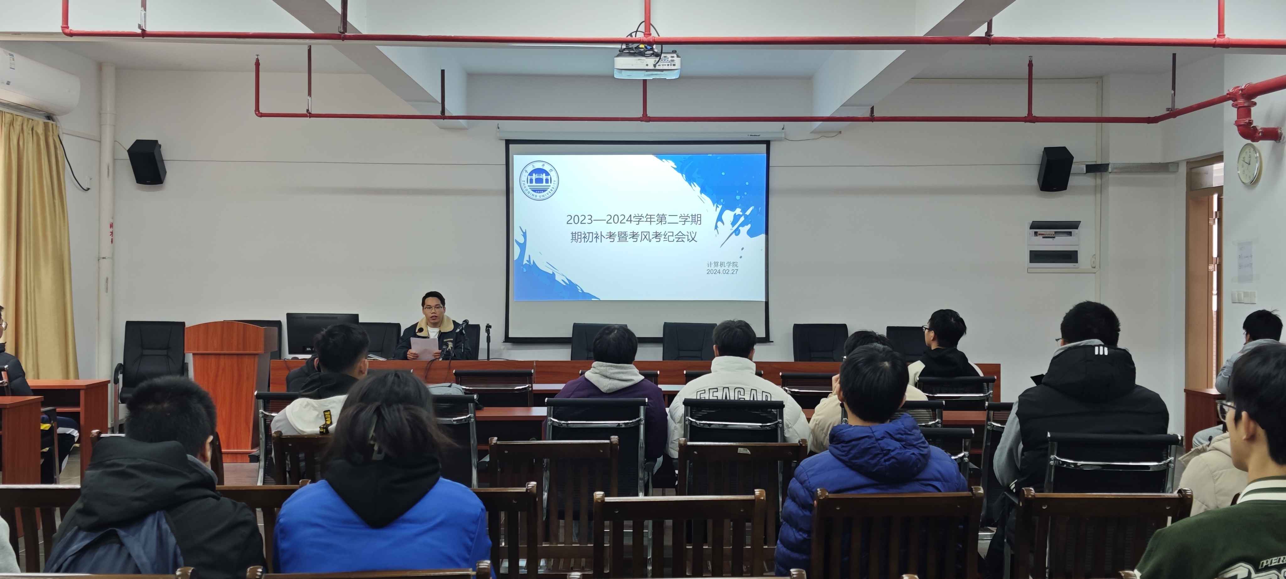 2月27日中午,在实训大楼315会议室召开补考2023级学生复习动员暨考风考纪教育会议。2023级辅导员梁燕龙老师主持,全体2023级补考学生参加了本次会议。