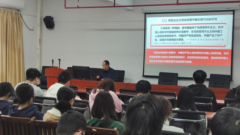 3月13日下午,书记思政第一课在实训楼315会议室举行,学院党委书记黎天宇带领学院入党积极分子围绕“中国式现代化与新时代青年的使命担当”开展深入学习,黎书记勉励青年学子:身处在中华民族发展的最好时期,要自觉将个人价值与党和国家、人民的期望结合起来;要坚持正确的人生观,在大是大非面前作出正确的选择;要发扬奋斗精神,要掌握过硬本领,树立在科技领域获取领先地位的远大目标,要有投身破解我国科技被“卡脖子”问题毅力和勇气,主动肩负起建设社会主义现代化强国的时代责任,成为中国式现代化建设、中华民族伟大复兴必不可少的人才力量。