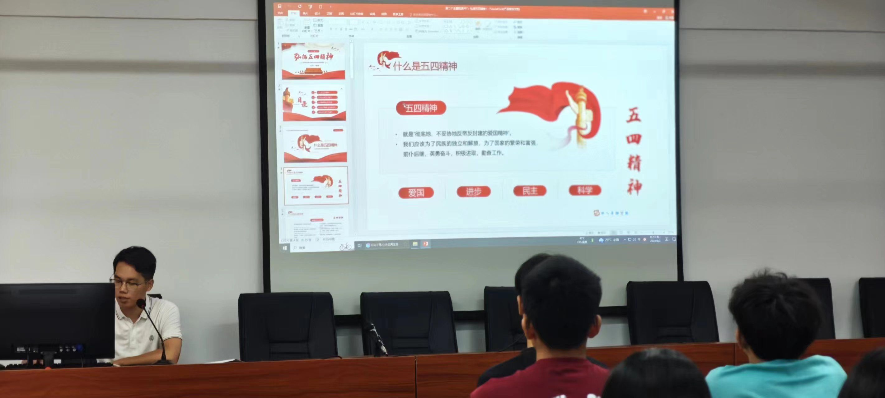 为深入学习贯彻习近平新时代中国特色社会主义思想,进一步加强青年学生的思想政治引领,激发爱国热情,学院团委于2024年5月18日在实训319开展“党旗引领成长,团旗点亮青春”团课活动。此次活动引导广大青年学生坚定理想信念,勇担时代使命,为实现中华民族伟大复兴的中国梦贡献青春力量。