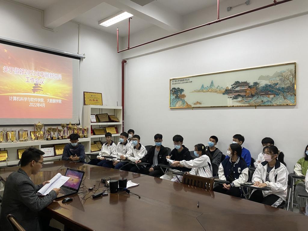 为了规范发展新团员工作,保证发展新团员质量,提升团员队伍先进性,2022年4月18日,英国威廉集团官网团委于中巴软件楼104会议室召开2022学年发展新团员工作安排会议,参加此次会议的有:学院团委书记梁燕龙、团委组织部学生骨干黄东生以及18名入团积极分子。