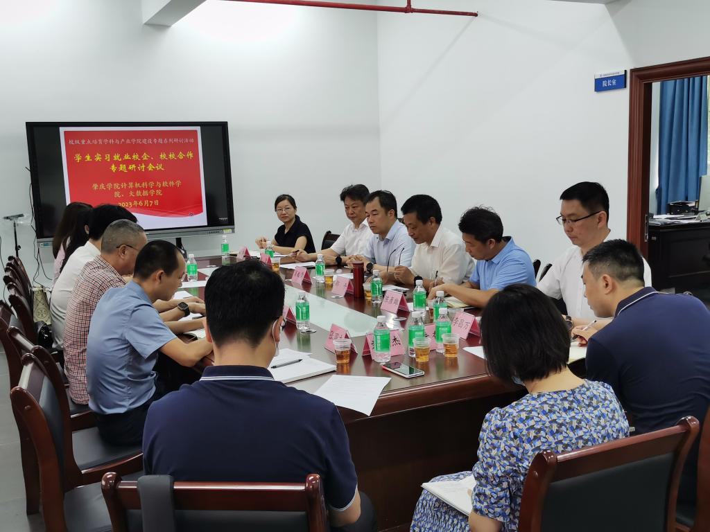 6月7日上午,我院组织了有广东信息工程职业学院、数字广东、广东九联等多家学校和企业,共同参与了校校合作、校企合作的实习就业交流会,并邀请了学校肖起清副校长、教务处张洪萍科长等嘉宾参与。交流会上,邵平院长就6月份拟组织开展“校级重点培育学科和产业学院建设系列研讨活动”的背景、目的等进行了详细的说明。交流会上肖副校长对学院教学工作做了重点指导,他指出学院的课程要对外开放,有更多的校外工程师来承接相关专业课程的教学,培养更多更好的双师型教师,课程要紧扣人工智能等前沿知识与技术,为国家培养紧缺的大国工匠和工程技术人员。交流会后,学院领导为上述三家单位进行了“专业实习基地”的授牌。