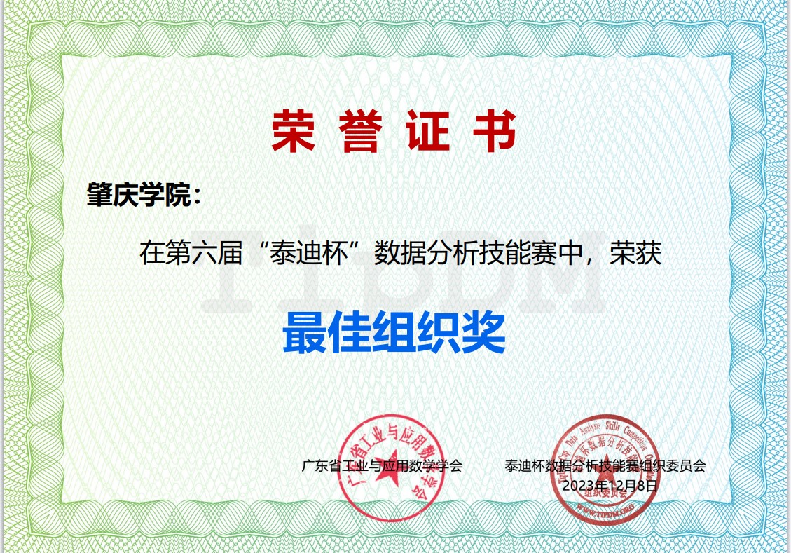 近日,第六届“泰迪”杯数据分析技能赛圆满结束,该比赛由泰迪杯数据分析技能赛组织委员会、广东泰迪智能科技股份有限公司、广东省工业与应用数学学会、人民邮电出版社等单位共同举办,于2023年9月9日正式开始,至2023年11月12日结束,竞赛以1名指导老师3名学生为一个队伍参赛,共有来自全国300所高校的1638支队伍报名参赛,我院组织了41只队伍参加了本次竞赛,以我院中巴实验室作为比赛场所,组织学生参加本次竞赛,经过高校和公司共同组成的评审专家组历时半个月的盲审,最终我院学子取得一等奖10项,二等奖11项,三等奖29项的喜人成绩,并因比赛组织有序,赛事成绩优异,获得大赛“最佳组织奖”。