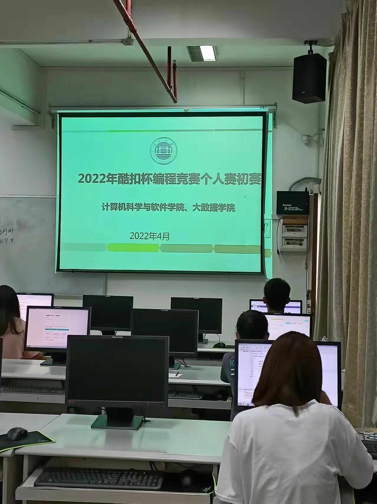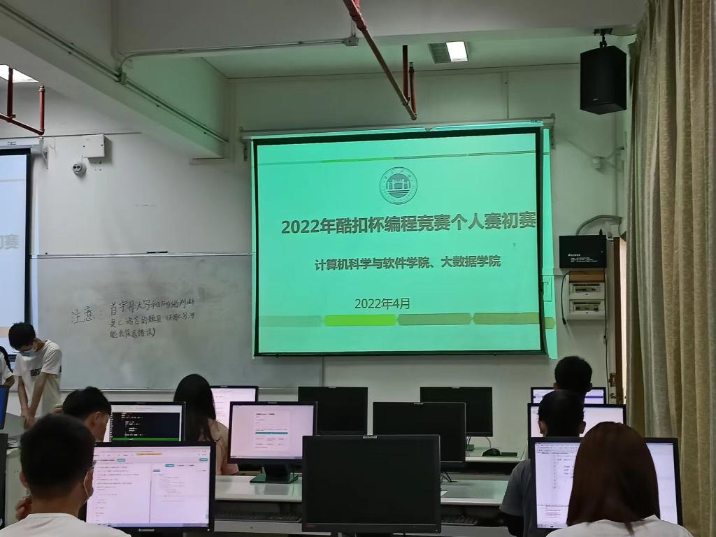 为提高计算机专业学生的编程能力,展现良好的计算机编程水平,2022年4月16日,实验室304室,502室,开展了2022年酷扣杯个人编程赛初赛。通过本次比赛,同学们不仅提高了自身的编程能力,也更加了解了程序设计竞赛,激发大家对编程的兴趣。同时,同学们在比赛中也很好的发扬了勇于挑战、永不放弃的精神。