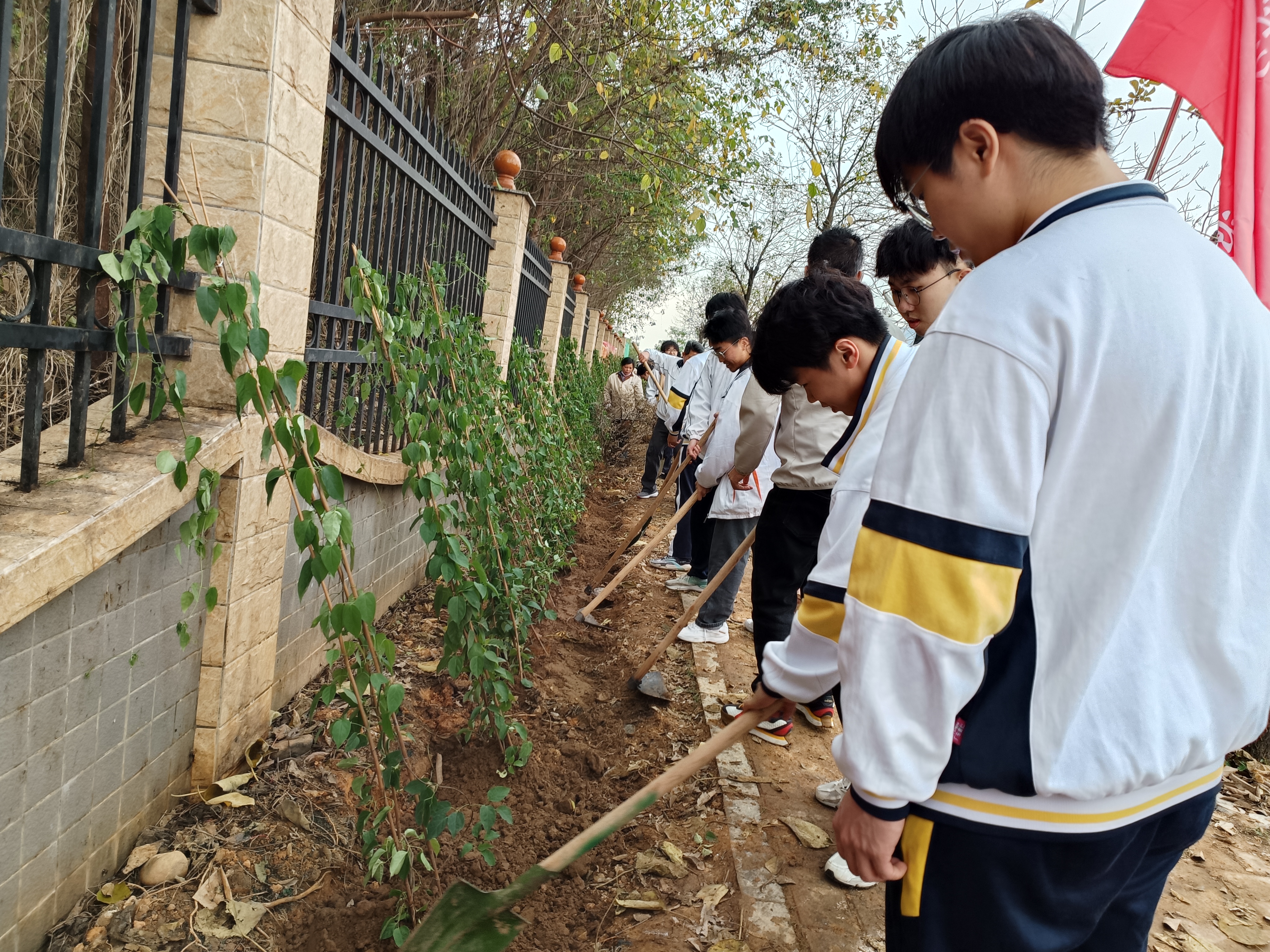 3月13日下午,英国威廉集团官网副书记陈彦雄,辅导员张文台带领60名志愿者参加义务植树活动。活动现场人头攒动,充满了无限的热情和动力。大家彼此合作,互相协作。有人用铲子松土挖坑,有人将嫩绿的树苗种植其中,还有人负责施肥浇水。大家分工明确,井然有序,团结协作的精神让人感到温暖和振奋。和煦的阳光下,蓝天白云、绿树小草交相辉映,整个校园仿佛一幅浓墨重彩的画卷。