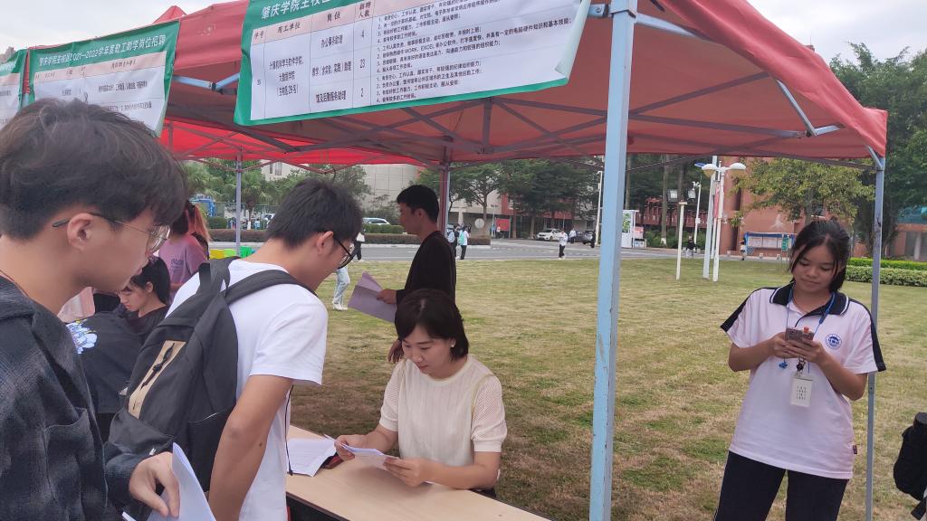 为使家庭经济困难学生利用能够利用空闲时间勤工俭学、减轻家庭压力,我校于2021年10月27日下午4:30―5:30在国砚广场举行“肇庆学院2021―2022学年勤工助学岗位招聘会”。