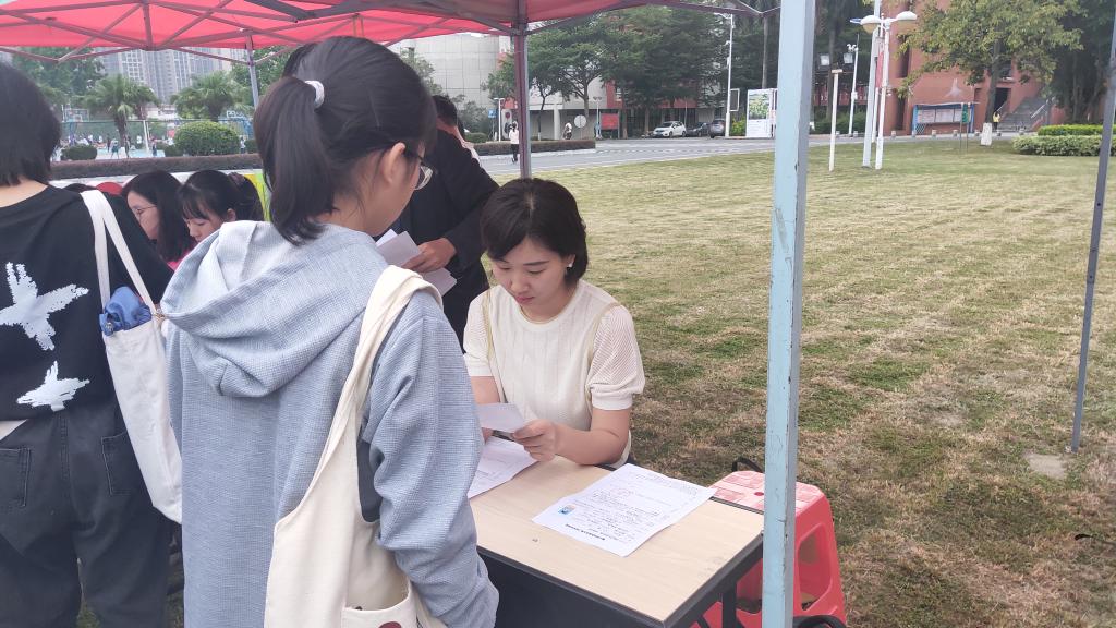 我院严格把关困难生认定工作,向我院困难生宣传学校勤工助学工作及其岗位设置情况,并指导有意应聘的困难生填写勤工助学申请表后加具意见并盖章,在招聘会当天到现场投表竞聘。在招聘现场,我院辅导员张梦娇老师与应聘困难生交流介绍我院勤工俭学岗位,收集申请表并鼓励学生通过勤工俭学,减轻家庭负担。