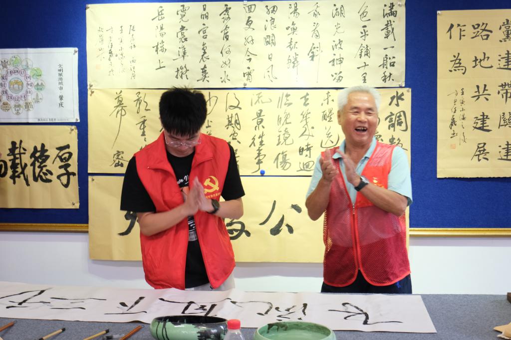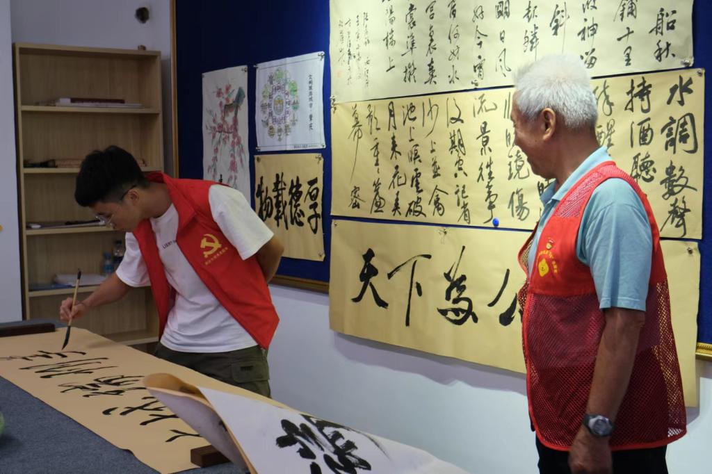 学生们参观并且学习党员活动中心的党史文化,利用重走红色足迹、追溯红色记忆、访谈红色人物、挖掘红色故事、体悟红色文化等多种形式活动,学生们纷纷表示将努力在实践中传承红色基因,听党话、感党恩、跟党走。随后,有一位书法老教师,给我们演示了他高超的书法技艺并且参观了关于当地许多书画作品,书法老教师给我们讲授了关于当地的端砚文化,并且邀请了两名学生进行互动展示书法作品,也相应的对于他们的书法作出指导和纠正。使我们深刻的了解到当地端砚特色文化和深厚的党史文化底蕴。