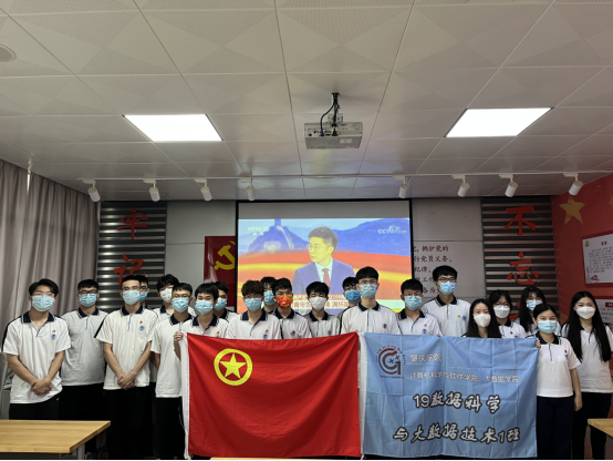 (荣获2022年肇庆市“五四红旗团支部”2019级数据科学与大数据技术1班团支部组织青年学生在学校初心堂观看大会直播)