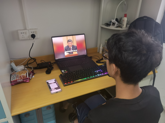(学院学生在宿舍观看大会直播)