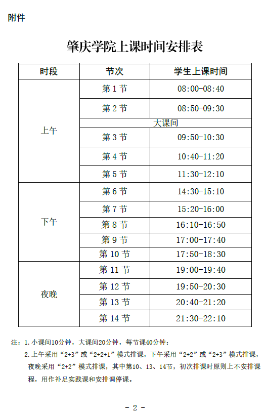 肇庆学院作息时间(上课时间)表(2019-2020学年第二学期开始正式执行)